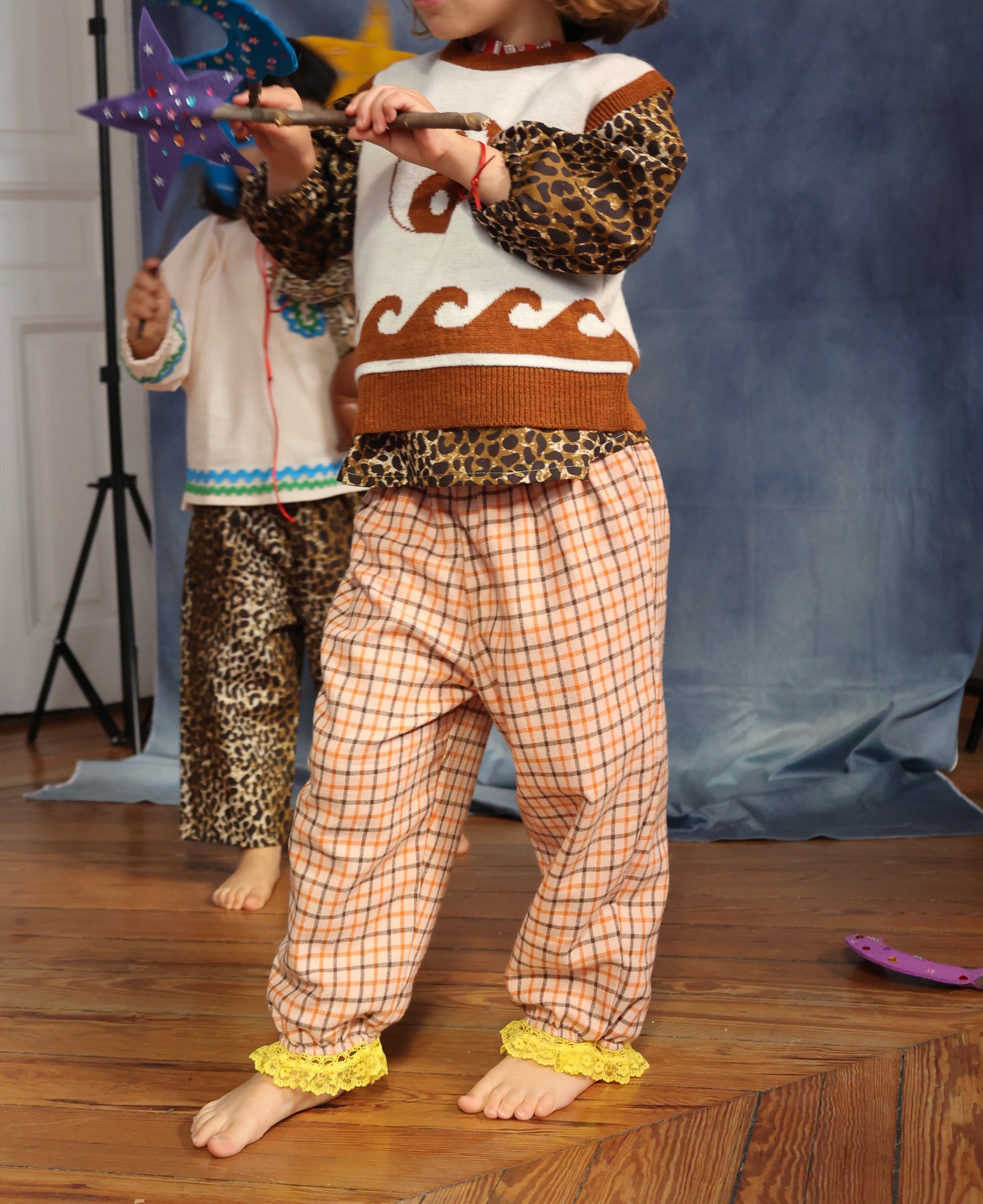 Balloon blouse crafted from 100% cotton, combining Animal Print fabric and stripes.