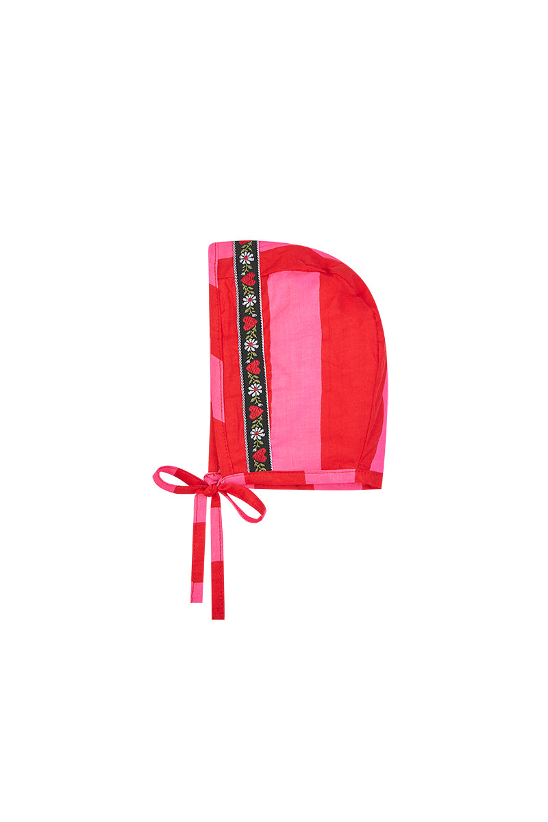 Printed cotton bonnet, lined with cotton poplin and finished with woven ribbon detail.