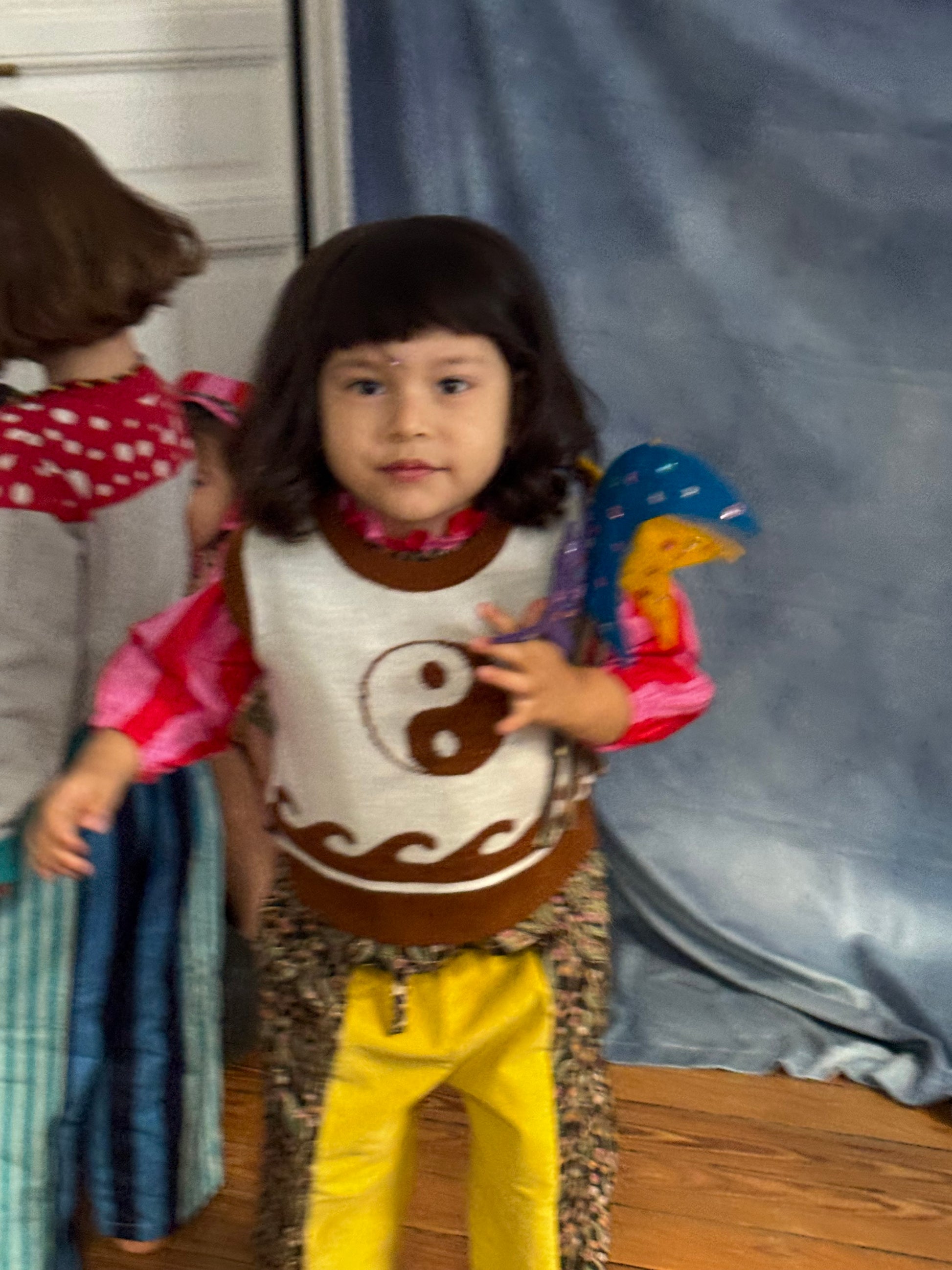 A unisex, two-tone knitted vest featuring a playful yin-yang design at the center.